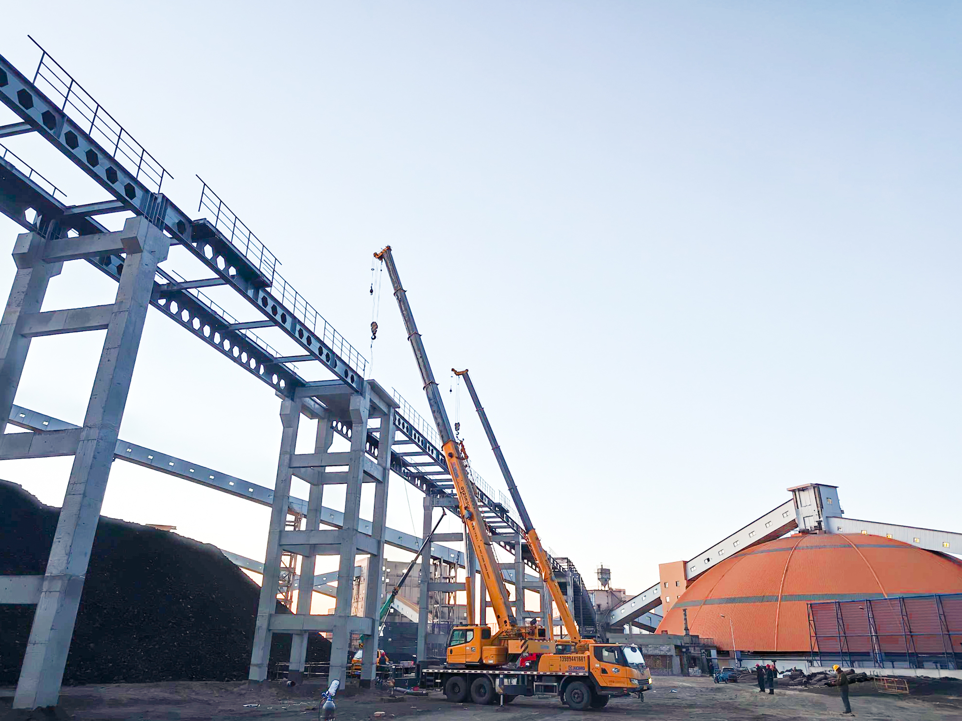 近日,新疆分公司施工的国投哈密能源公司储煤场晾晒工程钢结构吊装顺利完成。