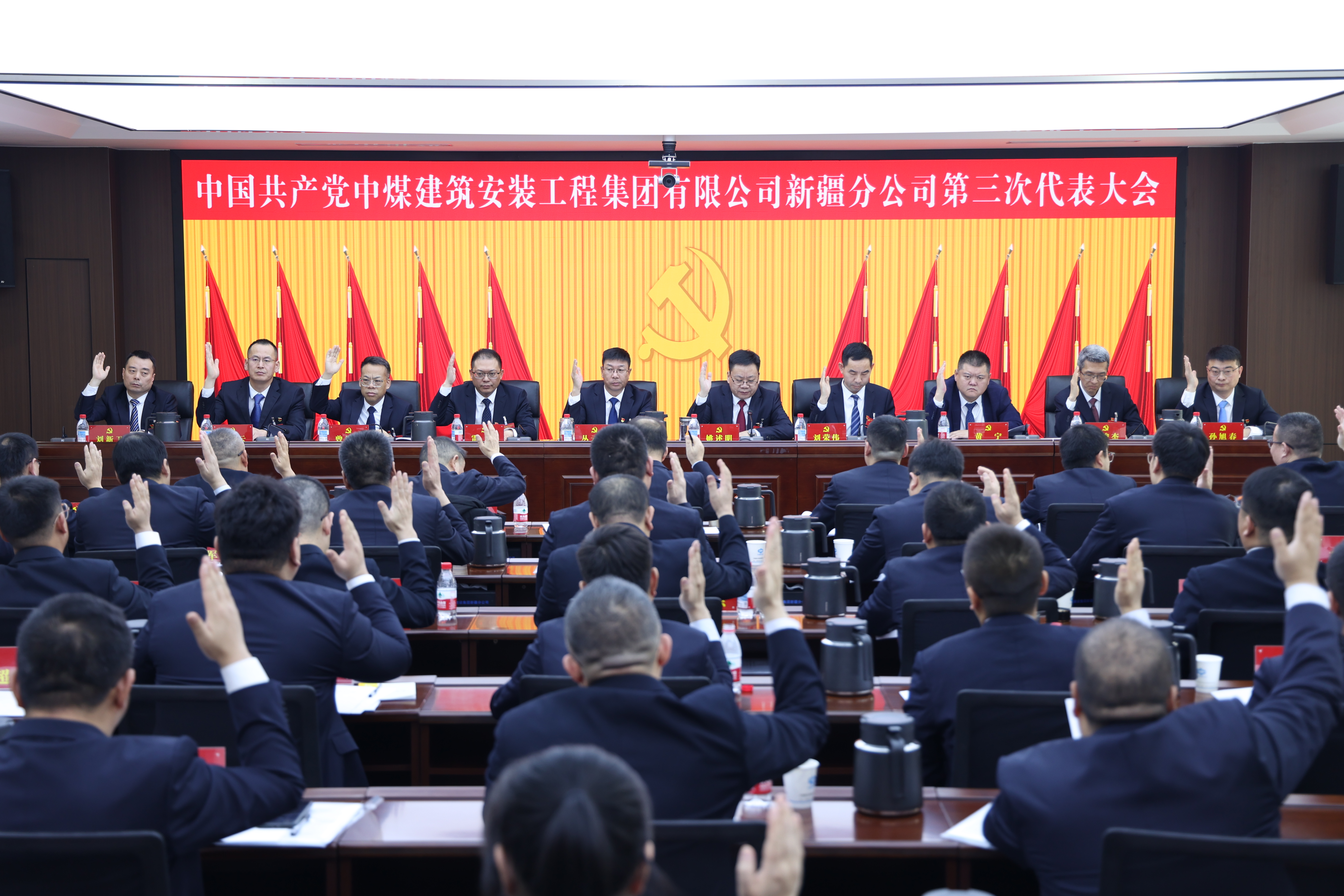 在庄严的《国际歌》声中,中国共产党中煤建筑安装工程集团有限公司新疆分公司第三次代表大会胜利闭幕。
