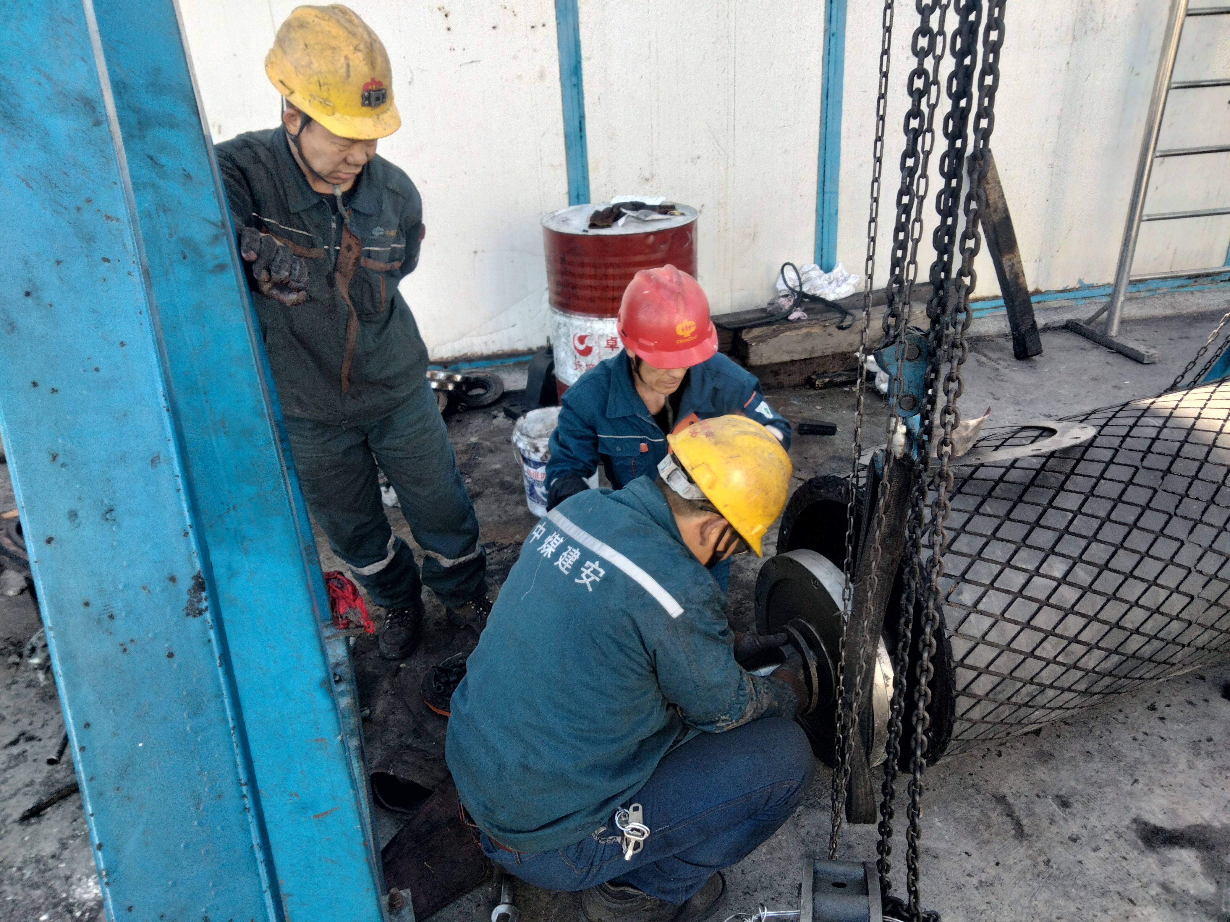 此次培训以401皮带机头备用电液滚筒的拆装操作为实训载体,技术骨干现场演示电液滚筒拆装全过程,重点剖析维修过程中的技术难点和注意事项,并实时解答参训人员的技术问题,有效提升了团队技术水平。